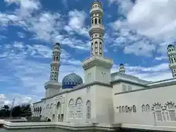 The Kota Kinabalu City Mosque, nicknamed the "Floating Mosque," is a serene architectural gem on Likas Bay. Built in 2000, its reflective lagoon creates an illusion of floating during high tide, blending Islamic elegance with modern design.