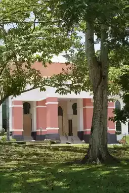 On the right side of the stairs is the administrative hall, a pink dome building, quite special