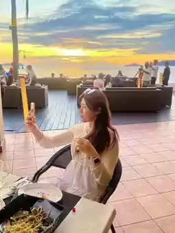 At sunset, I walked to the private beach. The sight of the ocean bathed in the colors of the setting sun and people taking photos in front of it made me think, "I'm so glad I came here."