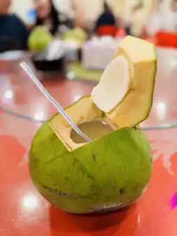 What made the meal even better? The cozy, lively vibes and round tables — perfect for group sharing. And those fresh clams in soup? So comforting. Don’t skip the coconut water!