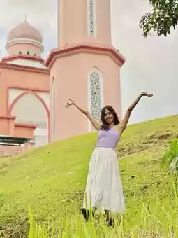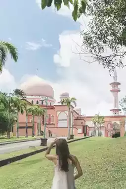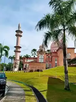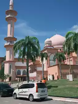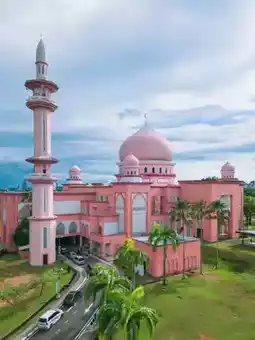 • Iconic pink-domed mosque perched on a hillside, overlooking the South China Sea.
