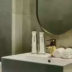 Monocolo Hotel rises from the bones of a former office building, now reborn as a boutique sanctuary where industrial edge meets organic calm. Its name—“Mono” for structure, “Colo” for color—echoes the design philosophy: a harmony of raw textures and nature-inspired tones. Sunlight pours through the triple-volume skylight, casting golden warmth across earthy interiors and inviting guests into a space that feels both grounded and elevated.