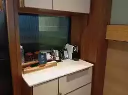 The room was provided with slippers, bathrobes, and other amenities. Bottled water and tea bags were placed on the bar, and housekeeping would replenish the bottled water if it ran out.