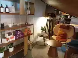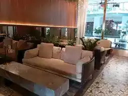 The lobby has sofa seating and a bar selling drinks and desserts. The hotel's design is ingenious, with every corner worthy of a photo opp!
