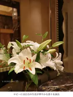 The lobby is decorated with many fresh lilies, reaching even inside the elevators going up to the guest rooms. You can enjoy a hotel stay full of an extraordinary resort feeling.