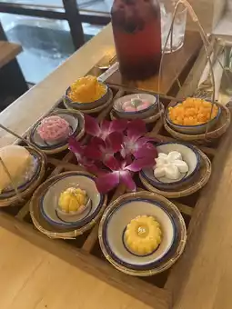 For something sweet, “Thongyib Thongyod” is the place to go. Known for its traditional Thai desserts, this spot is perfect for indulging your sweet tooth with delicate, handcrafted treats like the namesake thong yip and thong yod (golden egg yolk-based sweets). And if you’re feeling adventurous, try their Tom Yum coffee. It sounds unusual, but it brings an exciting mix of flavors that somehow works – spicy, sour, and rich coffee all in one.