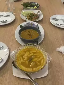 “Nong Joke Restaurant” is where you’ll find authentic Southern Thai cuisine. Their keng som (a sour, spicy tamarind-based curry), khua kling (a dry, spicy minced meat dish), and crab curry are the stars of the menu. The food is packed with bold, punchy flavors that represent the essence of Southern Thai cooking—spicy, aromatic, and deeply satisfying.