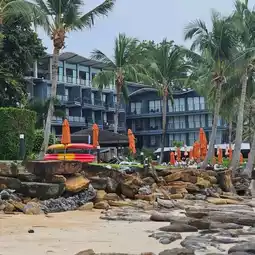 Beyond Krabi Resort. I like this place, the atmosphere is good, by the sea. Waking up in the morning and walking in front of the hotel is refreshing. Both types of rooms here are good, but this time I stayed in a room with a garden view. The room is very spacious, the bathroom is also very spacious, and there is a lot of usable space.