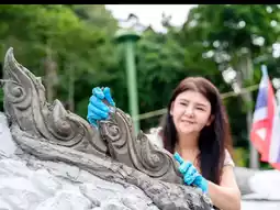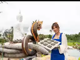 Nuch came to Wat Nong Chik, Krabi Province. I had the opportunity to join in building the Grandfather and Grandmother Naga statues myself. Which is casting cement into flakes to use in building the Naga statues. When we finished, we took them to stick on the Naga statues.