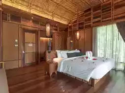 The room is spacious, has a bathtub, soft and comfortable bed, has a balcony by the water where you can come out to chill and see the view in the middle of the water. There are many types of rooms to choose from.