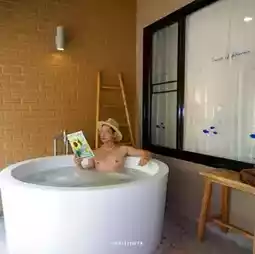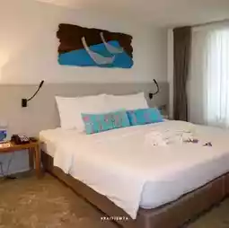 The resort is very shady, quiet, private, and has many trees. There are 2 swimming pools with a PoolBar where you can order cool drinks and chill by the pool. As for our room, we stayed in the Grand Deluxe Room, which is a room with a balcony in front of the room. There is a bathtub, a sitting area, and is next to the swimming pool. The room is spacious, the bed is big and comfortable, the air conditioning is very cool. The room has complete amenities. 😊