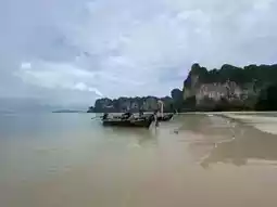 Railay Beach Travel: Buy a long-tail boat ticket at Ao Nang Beach 💰Average price per person: About 100 baht per person, take a boat for about 20 minutes to Railay Beach. Highlights: Clear water beach, you can swim, rock climbing activities, cafes, various shops. 🕰️bOpening hours: Long-tail boat to Railay Beach 08:00-17:00 hrs. You should plan to sleep in Railay 1 night and then take a boat back the next morning.