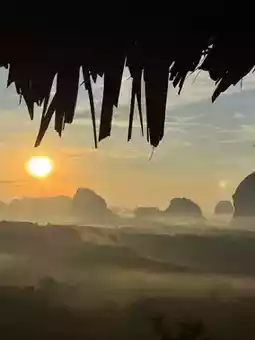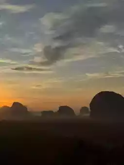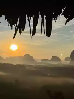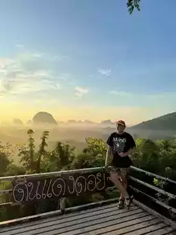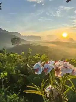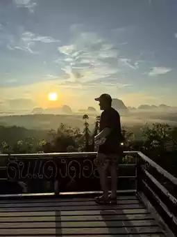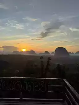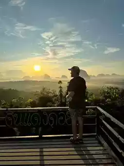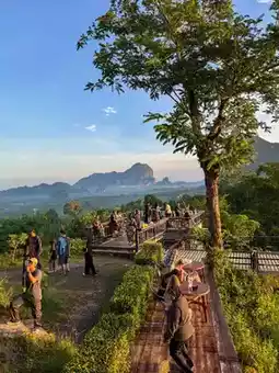 Anyone who comes to Krabi and wants to experience the first light of the sunrise must come to Din Daeng Doi. Arrive at around 5:45 a.m. There is a 40 baht entrance fee. Those who like to exercise or hike will only need 10 minutes. The path is very well made and very easy to walk. Those who can't walk with the elderly, there is a shuttle service. Check again. It often breaks down. Upstairs, there is a cafe with roti, fried eggs, breakfast with the first light of the day. It's really good. Those who want to experience a good atmosphere like this can go to Din Daeng Doi, Krabi Province. #Din Daeng Doi Krabi #Krabi #Visit Krabi