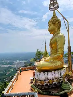 Easy to reach in the Krabi area by taxi, the Tiger Cave Temple is a must attraction to visit. At the feet of the mountain you will find small stores to buy refreshments, the iconic temple and the tiger cave. There nearby, you can begin a hike climbing over 2,000 steps up to the top where a giant golden Buddha statue waits for you together with a breathtaking panorama 📿☸️🏯
