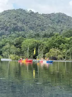 If you love natural attractions with fewer crowds, we recommend kayaking at "Khlong Hrud." The water is crystal clear, allowing you to see the fish swimming below. If you're not confident in your paddling skills, don't worry—you can hire locals to paddle for you. We hired a paddler for 150 baht per boat, and the boat rental costs 300 baht per boat, which accommodates two people. The round trip takes about an hour, and you can stop at various points along the way. There are spots where you can swim as well!