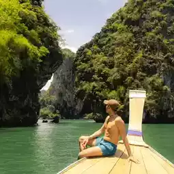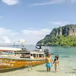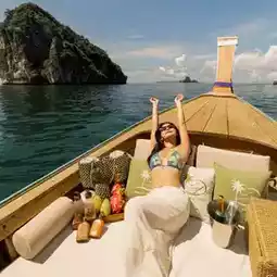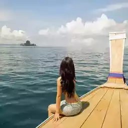 One Day Trip to 4 Unseen Krabi Islands 🌴🌞 Let's go on a chic cruise, take cool photos and enjoy the beautiful sea view. During the green season like this, the sea is beautiful, green trees, and not many people. It is another time when the atmosphere is great. I'd like you to try coming. The nature in Krabi is truly beautiful beyond words. There are many activities to do. ⛵ For this trip, we chartered a half-day boat with Railay Eco Tour, a luxury long tailboat that took great photos. There was a set lunch by the beach, fruit, snacks, drinking water, and props for taking photos. They also provided complete snorkeling equipment. We chose the 4 Island tour, a relaxing boat ride. We didn't spend long at each place, but we got to see 4 beautiful spots. The highlights of this trip include: - Poda Island, a white sand beach with crystal clear water that you can see fish near the beach - Chicken Island, stop to take a picture of the boat's bow with a cool chicken-shaped rock, or if you want to snorkel and see fish, that's also great. - Talay Waek, when the tide goes out, you'll see a sandbar in the middle of the sea connecting the three islands. It's very beautiful, the water is clear and the view is beautiful. - Phra Nang Cave Beach, Railay, a beach with an amazing view that anyone who goes there will fall in love with. When sailing through the rocks, it's beautiful beyond words. The nature is lush and green. Some days in Krabi, there's fog. It's suitable for those who want to travel to the sea without having to be crowded with anyone, but get lots of beautiful pictures and definitely have a good impression to take home. Anyone interested can book a boat at Railay Eco Tour. If you have time, I recommend staying overnight at Railay for two nights. Spend time chilling with nature. It's great. #Krabi attractions #Krabi #People who like to travel #Travel tips #Sea #Sea #Travel to Krabi #Thais travel in Thailand #thailand #travel #couplestrip #krabi #thailandtrip