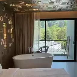 🛁 There’s a bathtub right beside the bed where you can soak while enjoying a stunning mountain view.