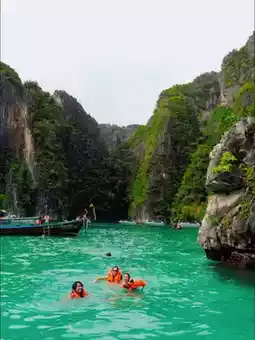 Maya Bay. Protected, peaceful, and almost too beautiful to be real. The limestone cliffs encircle a lagoon so perfect, it doesn’t seem natural—but it is. 🌊