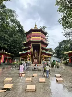Below, the cave temple hums with quiet reverence. Inside, golden Buddha statues nestle among stalactites, and the air is thick with incense and whispered prayers. Monks sit in meditation, their presence grounding the space in timeless ritual. The legend of the tiger that once roamed here lingers in the cave’s name and in the carved paw prints on the stone—reminders of nature’s power and the temple’s origins.