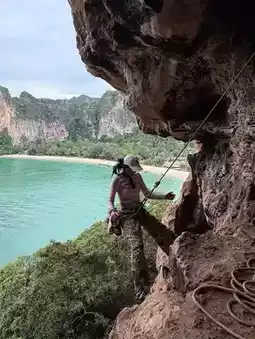 Go heal your heart in Krabi. There are many activities. The island is good. The beach is beautiful. There are many activities in Krabi town. Or go out to the sea. Of course, we have to go to the islands. This is the second time in Krabi. We will collect the routes that we haven't been to. Take a picture back to Railay to climb the cliff. Because last year we came to Railay and saw people climbing. And with the time, we thought we would come back again. And we came back by choosing to climb the long round. It took ~ 3 hours. By taking a boat and then doing a walk-in. The price is standard. You can choose any point. And I was not disappointed. So much fun #visit Krabi