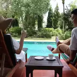 Colonial-style rooms decorated with Thai teak wood and private balconies Sea view or garden 🌿