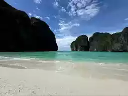 #summervacay Alright, let’s talk Maya Bay. You know that ridiculously pretty beach from The Beach movie? Yeah, it’s real, and it’s even more jaw-dropping in person. The water is that crazy clear turquoise, the cliffs are massive and dramatic, and the sand? Literally feels like flour. No joke.