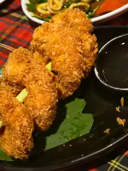 * Fried squid with garlic: Fresh squid, deep-fried, served with the restaurant's seafood sauce