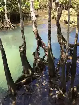 Mangrove roots rising up in the middle of the water, strangely beautiful like a painting