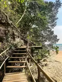 #summervacay So here’s the deal, if you’re around Ao Nang and craving a peaceful slice of paradise without the full tourist, Pai Plong Beach is it. Tucked behind those dramatic limestone cliffs in Krabi, this hidden gem feels like your own private island moment, minus the actual island. You can either take a kayak or walk the Monkey Trail (yep, real monkeys might join your hike, chill but cheeky).