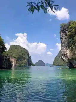 We arrived by longtail boat and honestly, the vibes were immaculate from the start. There’s a calm lagoon you can kayak through (highly recommend), and the main beach is perfect for just floating around or doing absolutely nothing. Total zen.