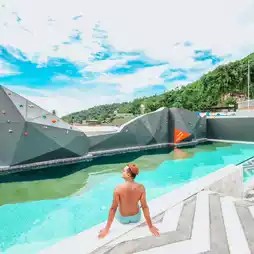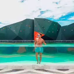 Or there is a glass swimming pool where we can swim and take cool photos