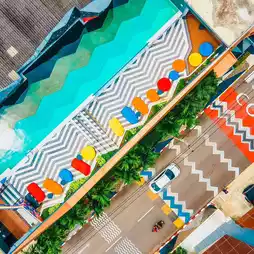 A beautiful swimming pool with many great photo spots