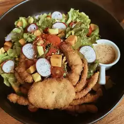 The shop is located in Mueang Krabi District, on the way to Khao Thong, about a 15-minute drive from the city. The shop is decorated in a tropical and minimalist style. There are both indoor and outdoor areas with various levels of seating. The ground floor is in the middle of the garden. The upper floor has a mountain view. 🍃