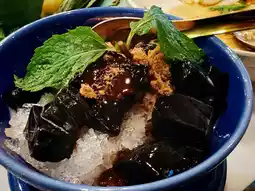 • ของหวาน “กล้วยบวดชีครามทะเล” 🍌 เสิร์ฟพร้อมโฟมมะพร้าว และซอสสาหร่ายทะเล เค็มหวานละมุนลิ้นสุดๆ 💙