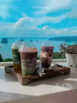 This place offers an amazing ambiance, especially during the moment the sun dips below the horizon—it’s truly breathtaking. There’s a variety of food options, including drinks, cakes, pastries, and other dishes. It’s absolutely fantastic!