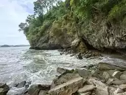 The beach boasts beautiful scenery and numerous sculptures. Sunsets are particularly beautiful in the evening, with the sun reflecting off the sea and the distant limestone cliffs. Unfortunately, it's rainy season and the sky is often cloudy. The beachfront streets are bustling with restaurants, bars, cafes, massage parlors, and travel agencies.