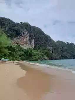 When talking about beaches in Krabi, many people will think of famous beaches like Ao Nang or Railay. But for those who want to escape the crowds and experience a quiet atmosphere, we recommend stopping by Pai Plong Beach. 💙✨ This is a small beach that still maintains much of its natural beauty. The water is not very clear because there is currently hotel construction. However, it is a natural beach with a long beach surrounded by trees and green forests, giving it a very private beach feel. 🍃 The morning atmosphere is okay because it is not hot. You can walk to see monkeys on the beach, but the way up is a bit steep. 😂 It is suitable for sitting and walking along the beach. The highlight is the quietness. There are no bustling shops like at famous beaches, but we have to walk past about 2 hotels. 📸 There are also photo spots. It can be considered a new secret spot. If you want to follow it, you have to walk to the end of the road and you will find a rock formation. It gives a bit of a cave feel. We highly recommend it because that spot is beautiful for taking photos. (P.S. There is a bit of trash.)📍 Travel: This beach is quite deep in the water. You will have to drive yourself or rent a car. You'll have to park your car outside and walk in, which requires a bit of a tiring climb up the hill. 😅✅ Summary: Pai Plong Beach is perfect for those looking for a quiet, relaxing spot away from the crowds, where you can experience nature without having to compete for a spot.