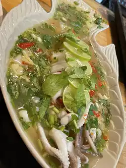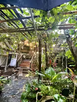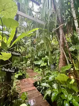 This cafe stands out for its lush, natural setting. Offering a variety of seating options, including a treehouse-style setting, it's a popular spot for tourists seeking relaxation and photography in Krabi. They mostly serve simple single-dish meals, such as pineapple fried rice and delicious spaghetti.