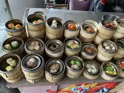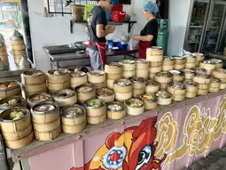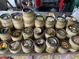 Racharos Dim Sum, located in Krabi Province, offers a variety of freshly made dim sum every morning. Their menu includes options like har gow, shumai, bak kut teh, and congee. A must-try is their overflowing crab meat rolls, packed with generous chunks of crab meat and perfectly paired with plum sauce for a delightful bite.