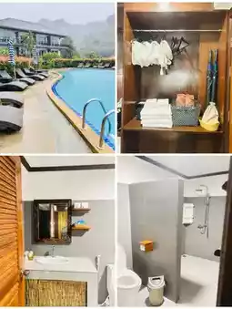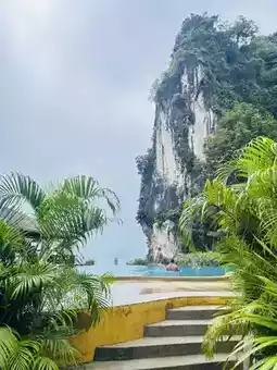 The pool bar area closes at 10 p.m. The pool is incredibly long and satisfying. The mountain view in front is truly breathtaking, especially during the day when it's been drizzling all day. The mountain backdrop is filled with mist, with towering limestone cliffs hidden among the clouds. Swimming in the pool and then emerging to see that view makes me think I'm a water spirit in the land of immortals. 🧚🏼♀️