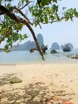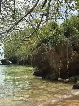 📝: A beautiful, small beach with clear, peaceful waters. It's not always accessible from the beach, making it a great place to stop and rest while kayaking. You can walk from the banyan tree to the beach at low tide. There's also a path along the cliffs, but this route is quite challenging for those who aren't experienced rock climbers.