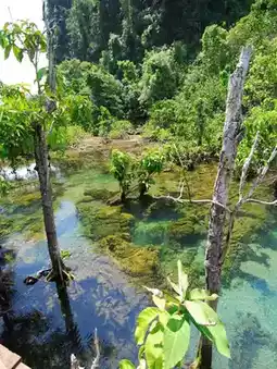 ✨Come and explore Khlong Song Nam, Khlong Rua in Krabi, an eco-tourism destination that hides the beauty of nature. The water is so clear that you can see the stone bed and tree roots distinctly, surrounded by lush mangrove forests and diverse plant species. The tranquil atmosphere is perfect for a leisurely walk on the wooden bridge, breathing in fresh air, and admiring the unique blend of fresh and saltwater that creates stunningly clear and colorful water. This is a must-visit retreat for nature lovers when in Krabi. 🌿💧✨