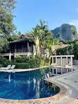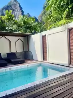 Railay Bay Resort & Spa is arguably one of the best-located accommodations in Railay, located right on Railay West Beach. Just steps from your room to the ocean! 🌊 The spacious villa-style rooms are available in both garden and pool villas. 🏡 The highlight is the balcony, which offers stunning sea views and sunsets. 🌅 The large beachfront pool is another great spot for relaxing all day, whether you're swimming, sunbathing, or sipping on a cocktail. 🍹 It's perfect for those looking to fully relax and experience the charm of Railay.