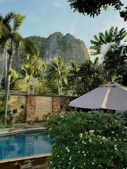 Railay Village Resort is tucked away at 544 Moo 2, on Railay West, boasting villas surrounded by lush gardens and just steps from a private beach. Getting here is half the fun: take a short longtail boat ride from Ao Nang Pier, then step straight into paradise. The smooth check-in is a plus, with friendly staff who speak excellent English and are happy to share their insider tips.