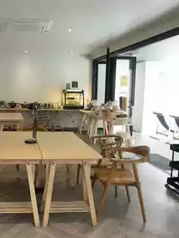 • Amenities include a lobby with tea/coffee, a laundry room, and a coworking area with free 24-hour access for guests.