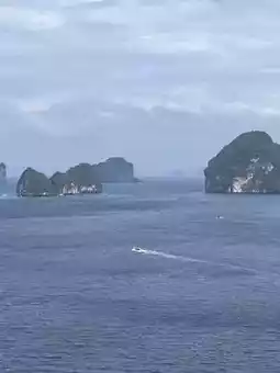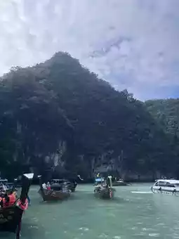 After a quick breakfast 🥥🍳, I hopped on a long-tail boat 🚤 gliding over emerald-green water 💚 so clear I could see the fishes swimming beneath 🐠🐚. As we approached Hong Island, limestone cliffs rose dramatically from the sea 🏔️, guarding a hidden paradise within.