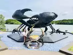 Wow! It's much bigger than expected. 🦀 The reflection in the water during the evening is stunning. If you're lucky enough to visit during sunset, the golden light hitting the black crab creates a mesmerizing scene. (Capturing it during the golden hour guarantees a viral-worthy photo!)