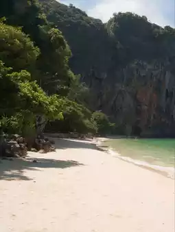 ๐: Don't miss this beach if you're in Railay. It's one of the most beautiful beaches, with limestone cliffs standing out in the sea. The beach is beautiful, with white sand and crystal clear water. We recommend renting a kayak to paddle around the small islands nearby. You can also relax and sunbathe or swim in the sea.