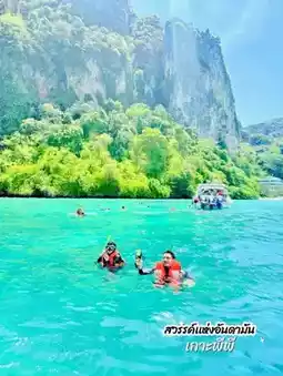 Phi Phi Island is part of Noppharat Thara National Park, about 40 kilometers from Krabi Province. It is a popular tourist destination for diving, seeing corals, sea anemones and fish because of its beautiful and diverse colors. It has white, clean sandy beaches and beautiful scenery. There are also accommodations, restaurants and complete facilities.
