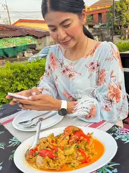 Enjoy eating and enjoying fried crab at Pu Dam Restaurant, Krabi.